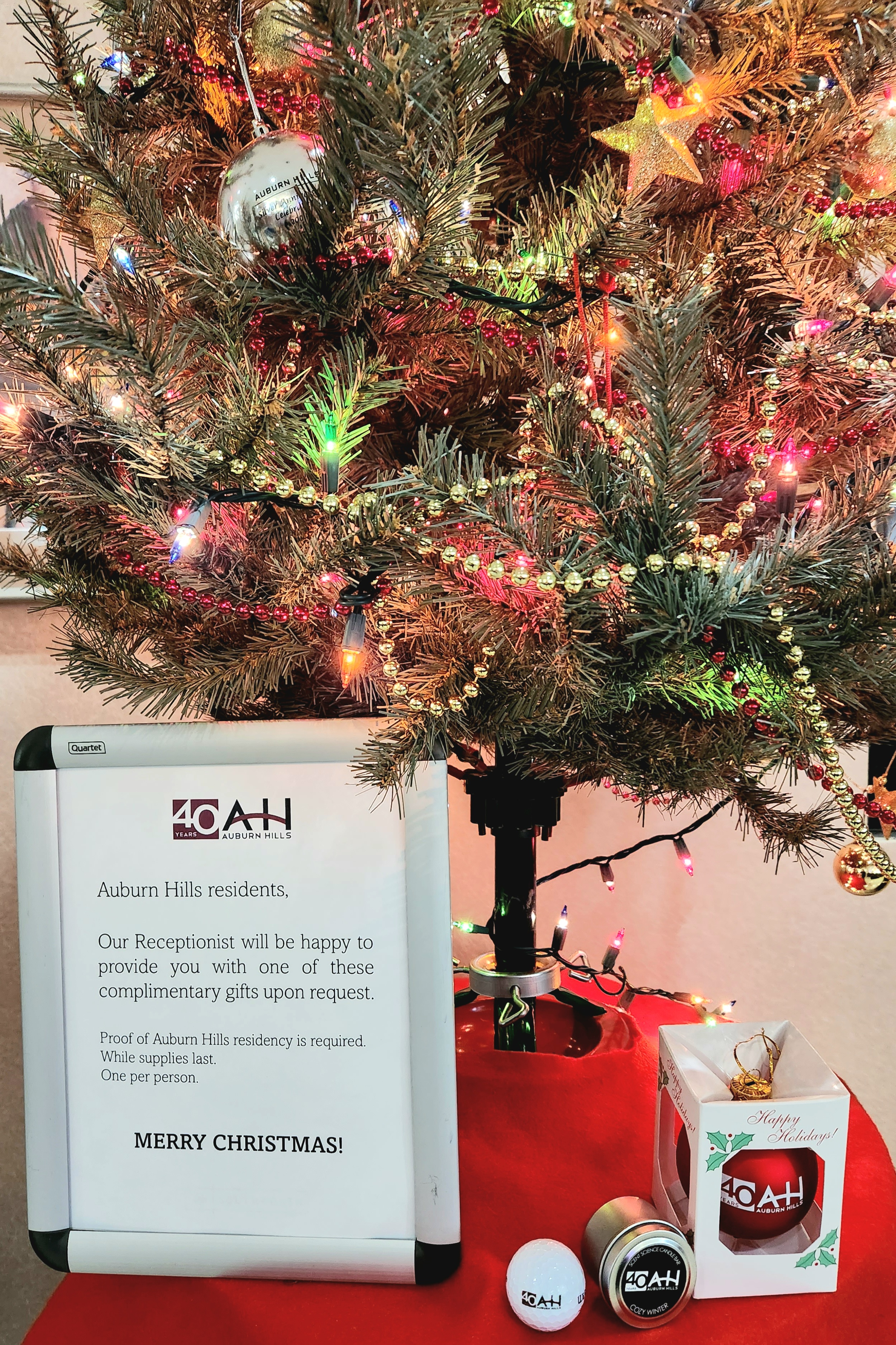 Residents can stop by the Reception Desk at City Hall between now and Christmas and choose from one of these 40th anniversary gifts, compliments of our corporate community.