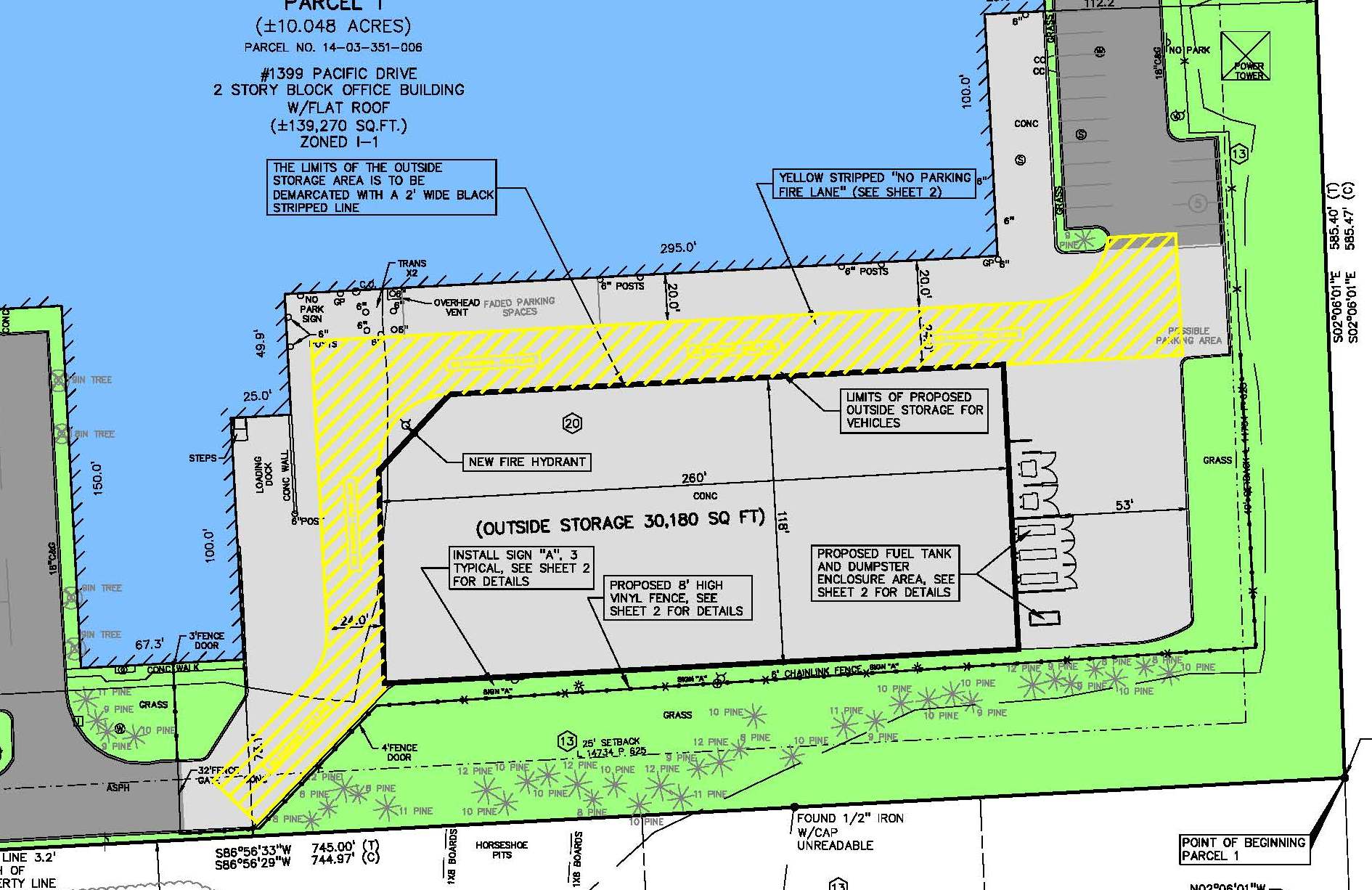 As part of their relocation, AM General has applied for a Special Land Use Permit to create a screened and secured outside storage area on the south side of their new home located at 1399 Pacific Drive.