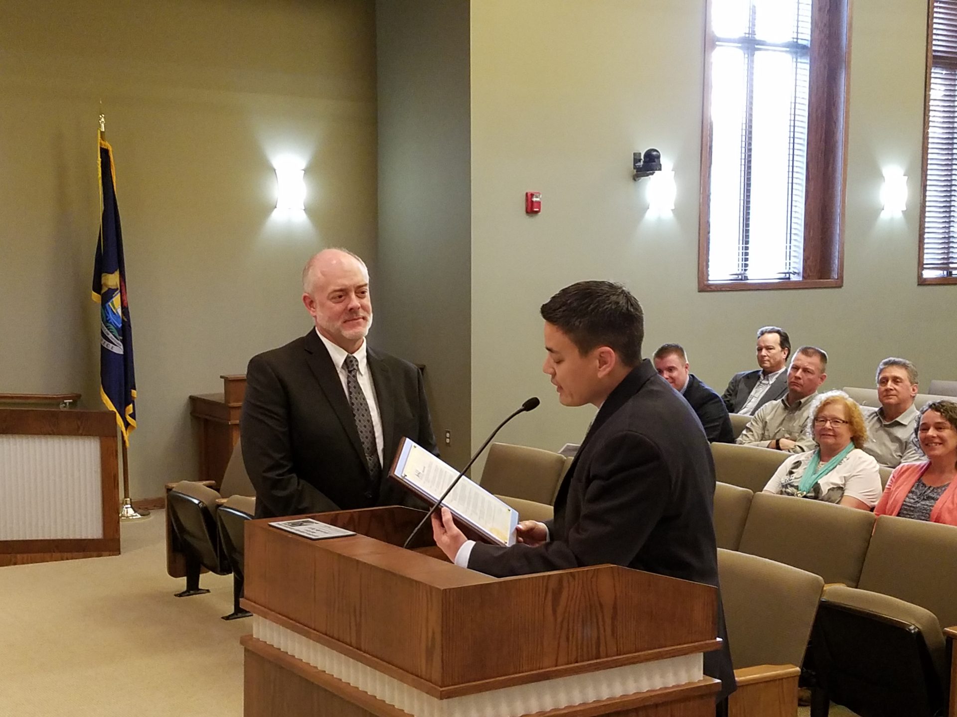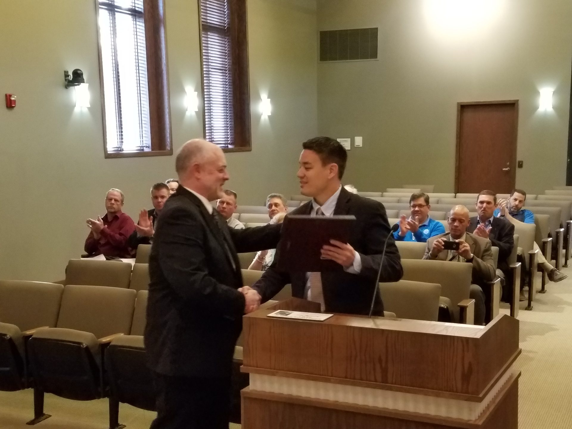 Looking back at last night, there’s no doubt that Mayor Kevin McDaniel took great pride in presenting a proclamation to Mr. Ed Guay, an Avondale Public Schools Teacher who was recently named Oakland Schools Teacher of the Year. Mr. Guay has been teaching English and Drama in the school district for thirty years, so it’s fitting that as his career at Avondale is coming to a close, he has received such a wonderful acknowledgment for his years of successfully educating students in the district. The tables were turned last night when Mayor McDaniel had the chance to call Mr. Guay to the head of the class (well, City Council Chamber), since Mr. Guay was once a teacher of Mayor McDaniel’s. When you meet Mr. Guay, you know right away that his enthusiasm for teaching can hardly be contained. All of us at the City of Auburn Hills wish Mr. Guay a long, healthy, and happy retirement. We know he’s earned it!