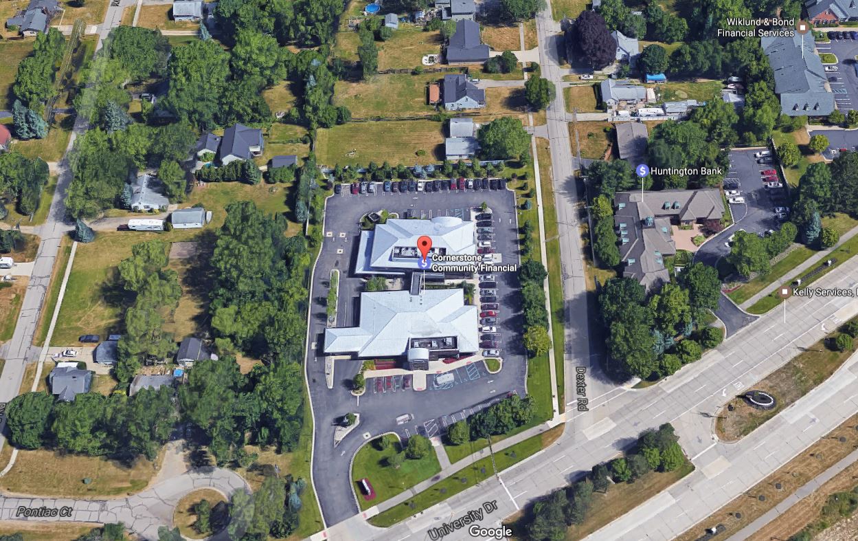 An application has submitted to the City of Auburn Hills by Cornerstone Community Financial Credit Union, located at 2955 University Drive, to install additional parking behind their building that would provide much-needed room for their continued growth. The credit union, which has been headquartered in Auburn Hills since 1992, wishes to rezone and purchase the home that is situated directly north of their property at 2025 Dexter Road to facilitate this small 30 space (net) parking lot expansion.