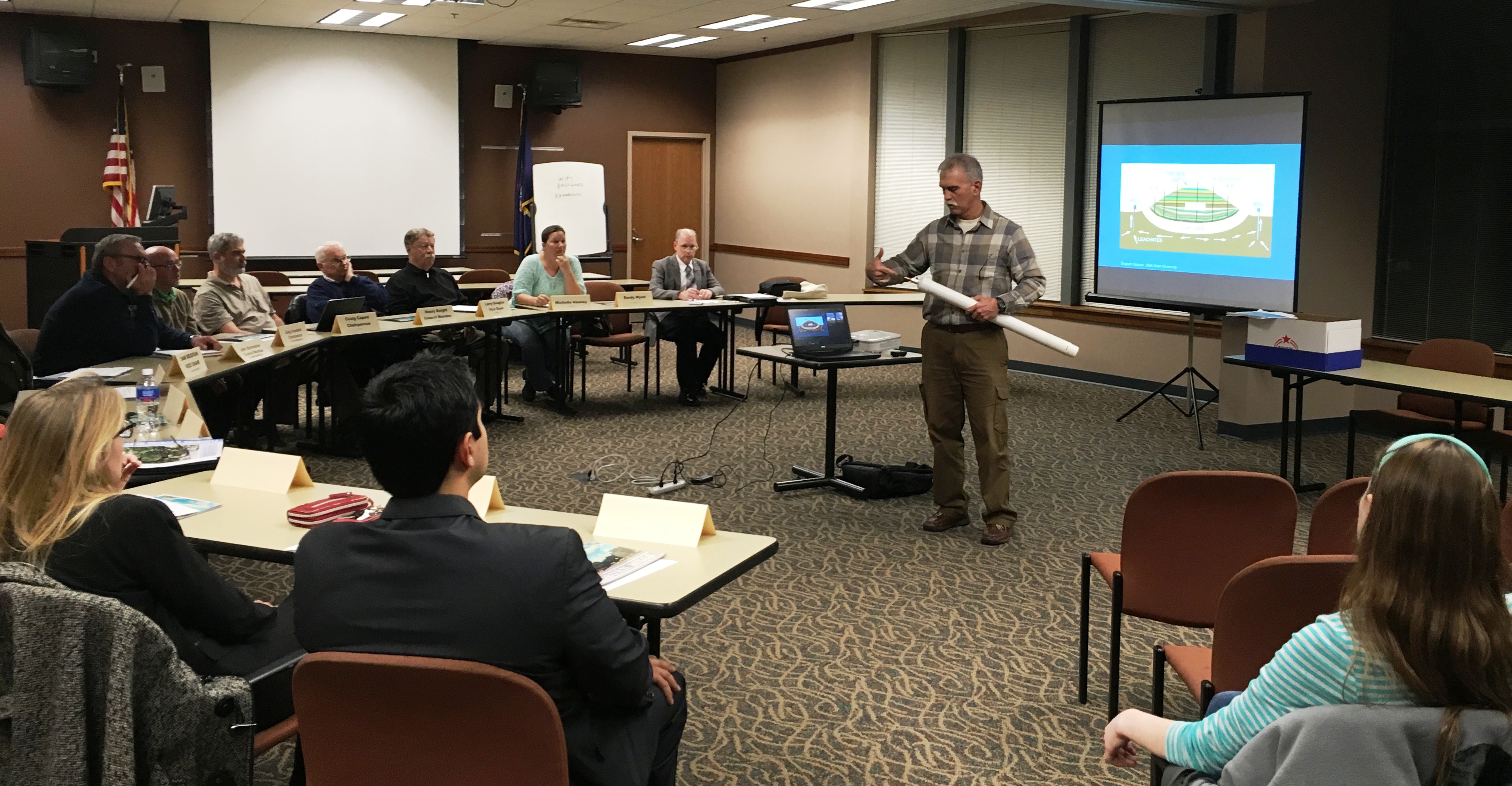 Mr. Lambdin, flanked by geologist Gregory Barrows representing the Michigan Department of Environmental Quality, reassured those in attendance that all indications show that there is no concern for public health or safety at this time.