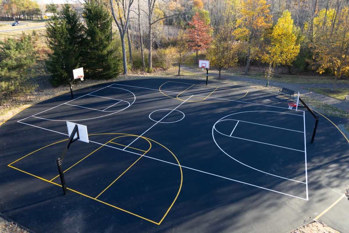 The basketball court is one of River Wood Park’s most popular features. Generations of kids have played basketball there, just a couple of free throws away from the beautiful banks of the Clinton River. Development on River Woods Park began in 2002 with multiple phases, which included the installation of the original court. The ribbon cutting for the original park project was on June 7, 2003.