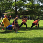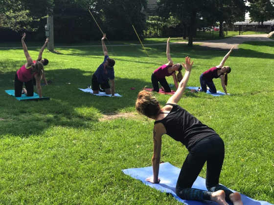 Early morning workouts are usually not my thing. I like to go to the gym in the afternoons, or sometimes the evenings. Usually, I go to a gym for a quick hour workout after I finish work. Light cardio and weight machines are my go-to. The overall goal is to keep my heart rate up, get my steps in, and trying to work off whatever sweet treat I had during the mid-afternoon funk I fall into. The gym for me is all about keeping in shape and preventing weight gain due to sitting at a desk for eight hours and studying for classes and all of the stress that comes with college. This event was also different because it was held at Riverside Park. I never had a full workout on the grass before, and although it was a bit wet from dew it was enjoyable.