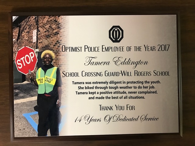 On Thursday morning, October 5th, like most Thursday mornings, I attended a weekly Auburn Hills Morning Optimist Club meeting. Today we were lucky enough to share our meeting with Tamera Eddington, our wonderful and highly reliable Crossing Guard at Will Rogers Elementary. Rain or shine, Tamera is there to make certain that children safely cross to get to school each morning and afternoon, like clockwork.
