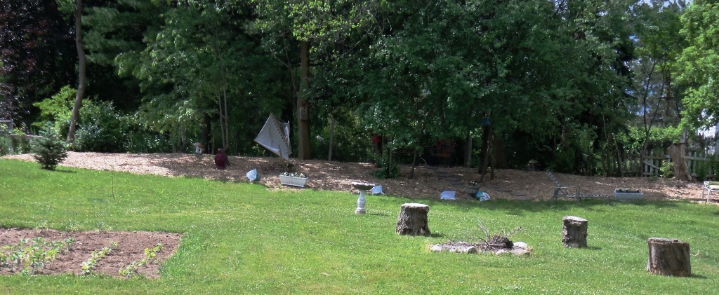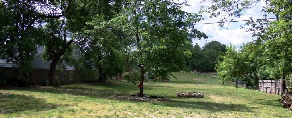 He also added fill to the uneven backyard and created a gently rolling landscape. Gardens were added. A swing was hung from a tree. In the farthest end of the yard, a park-like setting was created complete with a hammock.