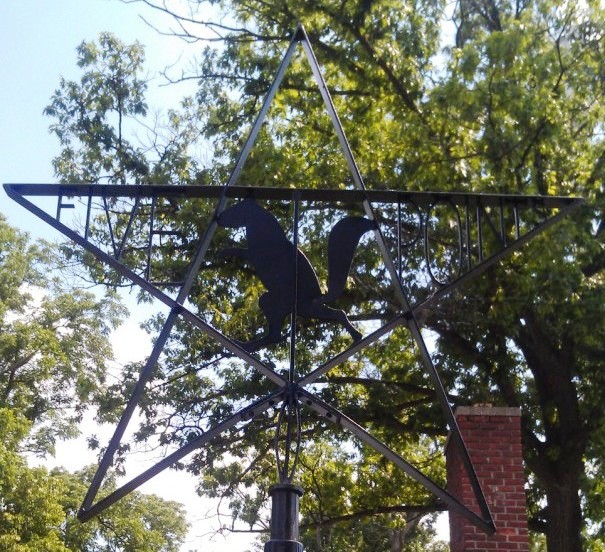 After visiting with Pat and Phyllis, I went to check out the sign.  I’ve worked here since 1999 and did not know it was there.  The sign has a lot of character with a little squirrel in the middle of a five-pointed star.  I stopped and pondered about the many good people, who over the years, have made Five Points into a “place” – a real community.
