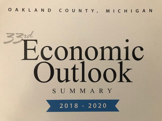 The 33rd annual Oakland County Economic Outlook Luncheon took place on Thursday, April 26, 2018. Dr. Gabriel M. Ehrlich and Donald R. Grimes from the University of Michigan Research Seminar in Quantitative Economics delivered their annual report. For those who want to learn more, the final report will be available online at AdvantageOakland.com.